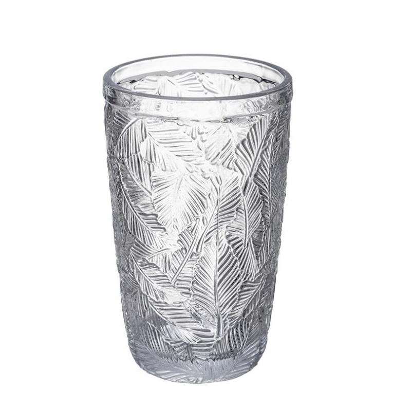 Prosta i elegancka, idealna do serwowania zimnych napojów, soków czy drinków. Wykonana ze szkła o subtelnym, tłoczonym wzorze liści, co nadaje jej dekoracyjnego charakteru i uniwersalności – pasuje do eleganckiego wnętrza i codziennego użytku.