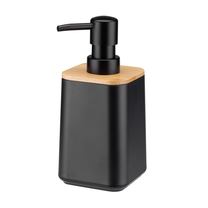 Dozownik do mydła MORENO czarny marki GALICJA to eleganckie i funkcjonalne akcesorium, które doskonale łączy nowoczesny design z codzienną wygodą użytkowania. Wykonany z trwałego tworzywa sztucznego oraz wykończony naturalnymi elementami bambusowymi, idealnie wpisuje się w modne, minimalistyczne aranżacje łazienek i kuchni. Kwadratowa, stabilna forma oraz wygodna pompka zapewniają precyzyjne dozowanie mydła w płynie lub płynu do naczyń bez rozchlapywania. To praktyczne rozwiązanie, które podnosi estetykę i funkcjonalność każdej przestrzeni.