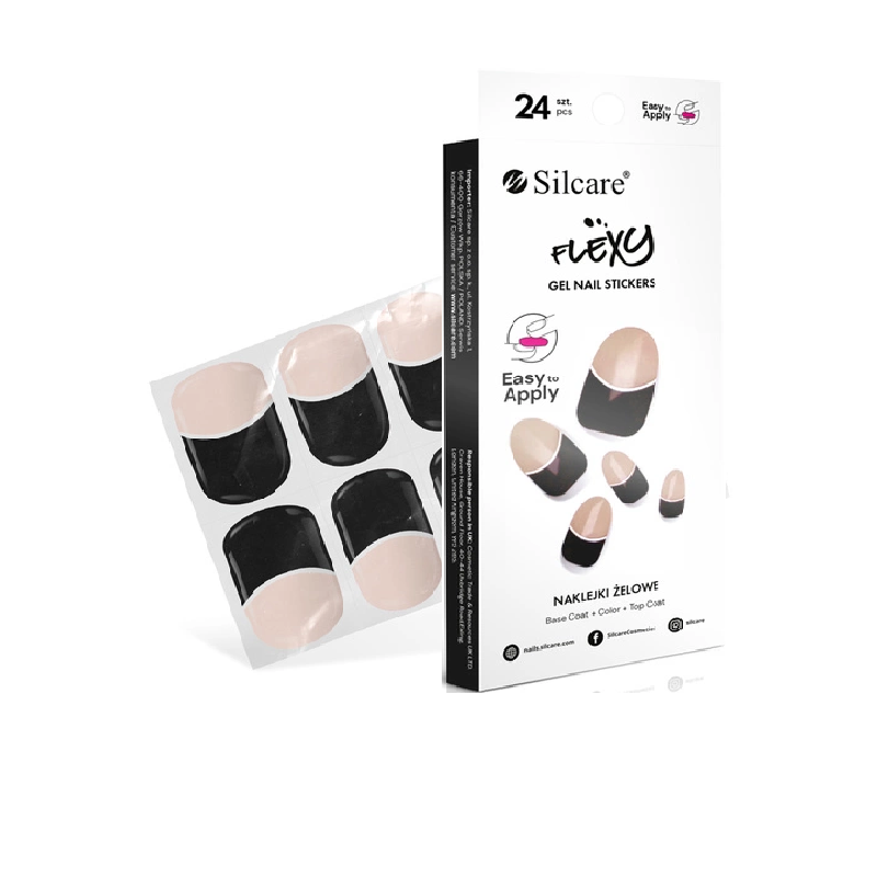 SILCARE NAKLEJKI ŻELOWE NA PAZNOKCIE 24SZT CZARNY FRENCH KS47A-24 łatwa aplikacja.