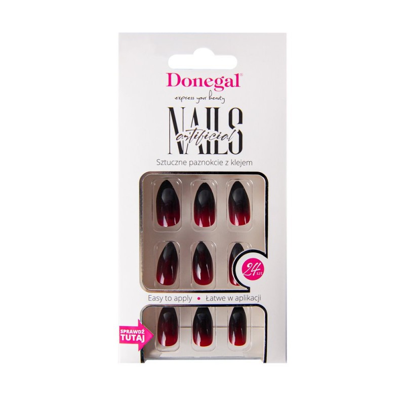 DONEGAL SZTUCZNE PAZNOKCIE Z KLEJEM BABYBOOMER BORDOWO-CZARNY 24 SZTUKI 3084