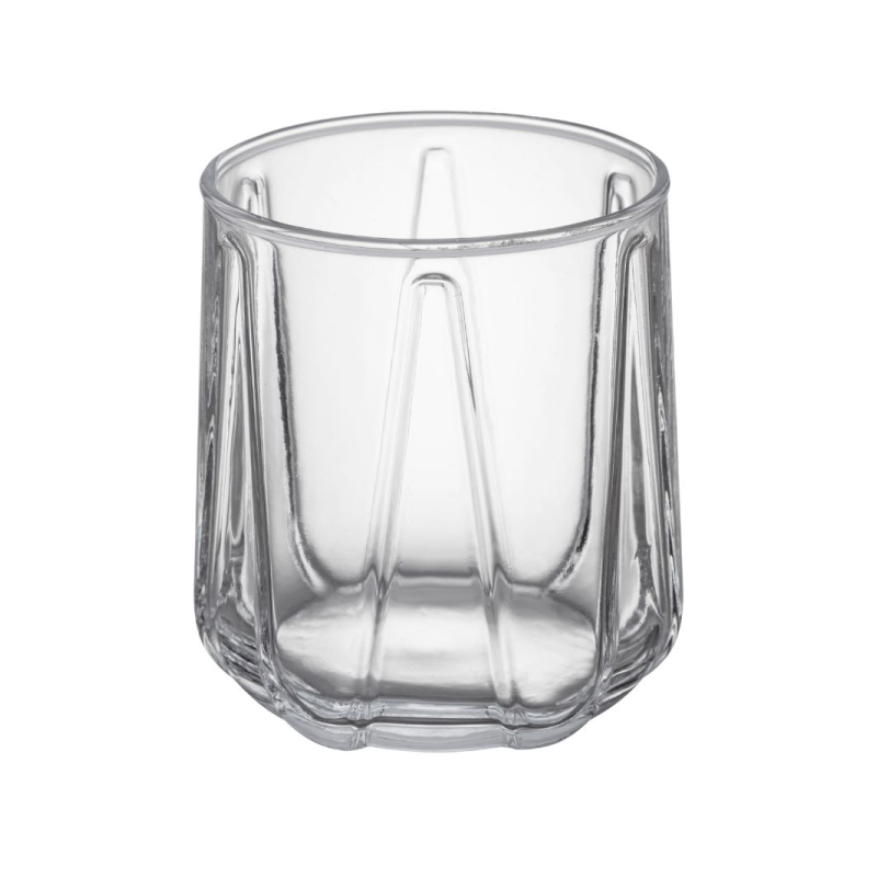 Szklanka ELLA o pojemności 360 ml to elegancki i uniwersalny element zastawy stołowej. Wykonana z przezroczystego szkła, jej geometryczny tłoczony wzór nadaje jej nowoczesny styl. Kształt został zaprojektowany tak, by dobrze leżała w dłoni, a solidne dno zapewnia stabilność. Doskonale sprawdzi się przy podawaniu wody, soków, napojów zimnych i koktajli. Produkt można myć w zmywarce.