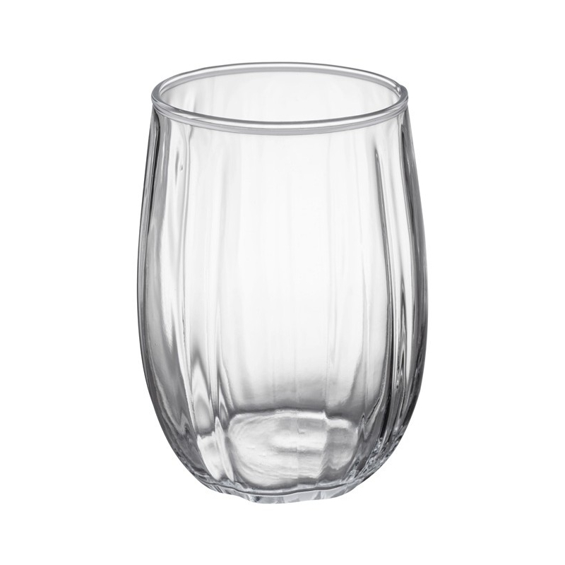 Elegancka szklanka 370 ml z dekoracyjnym ryflowaniem, idealna do codziennego użytku i serwowania napojów