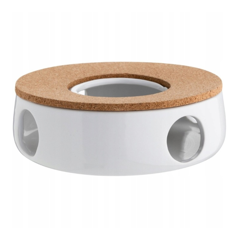Dodatkowa korkowa podkładka stabilizuje dzbanek i chroni powierzchnię przed zarysowaniami. Podgrzewacz sprawdzi się zarówno w domu, jak i w restauracji czy kawiarni, stanowiąc funkcjonalny i elegancki element zastawy stołowej.