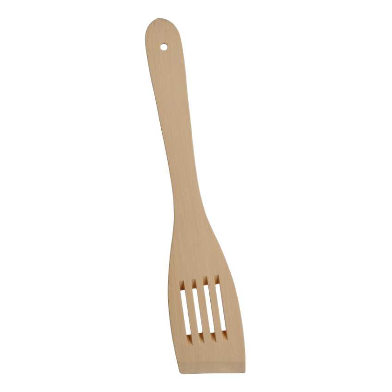 Drewniana łopatka ażurowa do smażenia i mieszania potraw. Lekka, trwała i bezpieczna dla naczyń z powłoką teflonową.