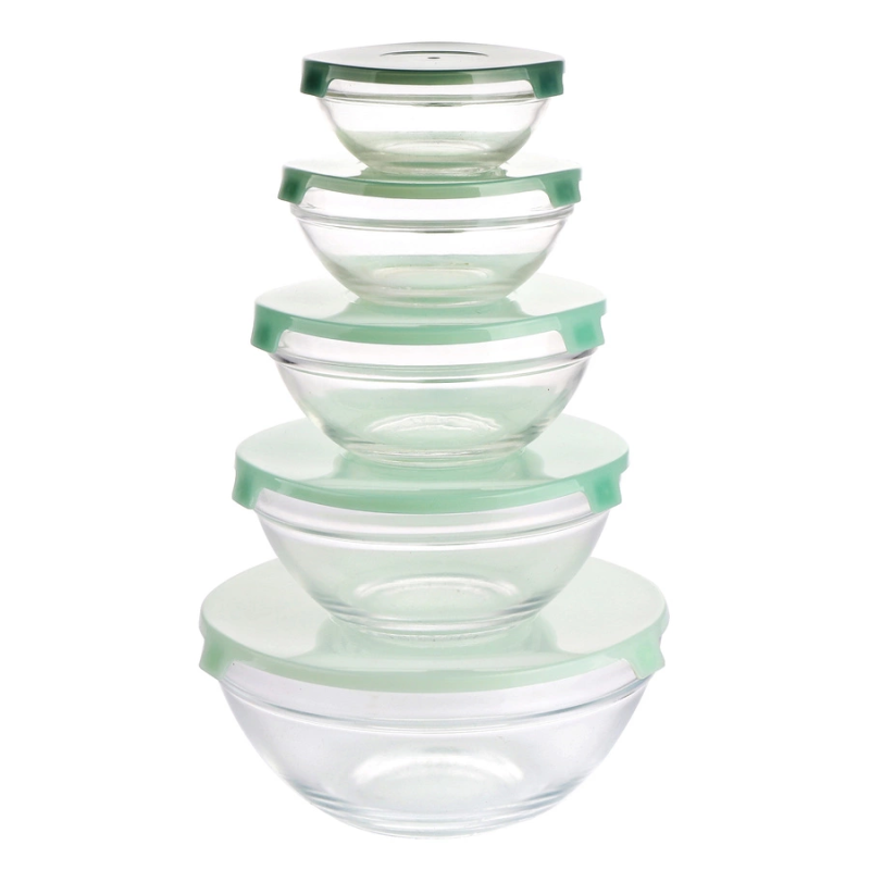 Zestaw 5 szklanych salaterek Verdure z pokrywkami – idealny do serwowania i przechowywania żywności w każdej kuchni.
