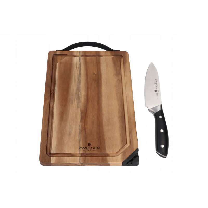 ZWIEGER OPTIMA DESKA DO KROJENIA AKACJOWA Z NOŻEM I OSTRZAŁKĄ
