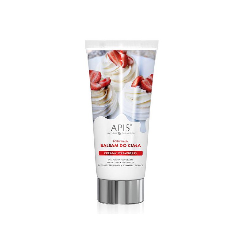 APIS BALSAM DO CIAŁA 200ML CREAMY STRAWBERRY Idealnie gładka i nawilżona skóra otoczona aromatycznym zapachem truskawek ze śmietanką