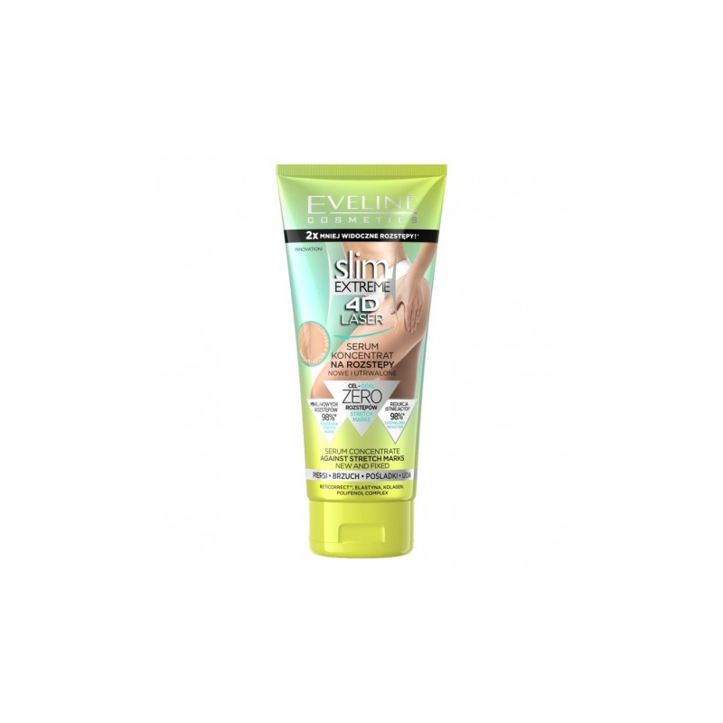 EVELINE SLIM EXTREME 4D LASER SERUM BALSAM DO CIAŁA 150ML NA ROZSTĘPY skóra staje się gładsza, bardziej elastyczna i odporna na rozciąganie.
