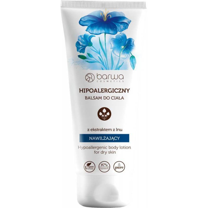 BARWA HIPOALERGICZNA BALSAM DO CIAŁA NAWILŻAJĄCY Z EKSTRAKTEM Z LNU 200ML do skóry suchej, zmęczonej i skłonnej do alergii.