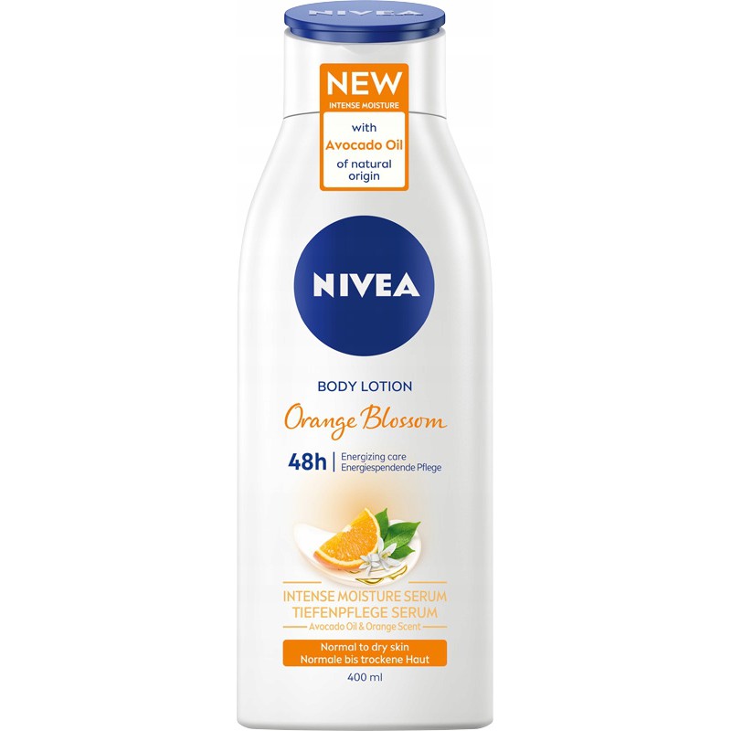 NIVEA BALSAM DO CIAŁA 400ML KWIAT POMARAŃCZY został wzbogacony o głęboko nawilżające serum i naturalny olejek z awokado.