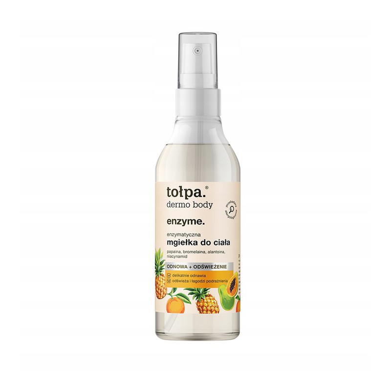 TOŁPA ENZYME ENZYMATYCZNA MGIEŁKA DO CIAŁA 3 ENZYMY 195ML dla osób o skórze problematycznej i wrażliwej, potrzebującej nawilżenia, odżywienia i rozświetlenia.