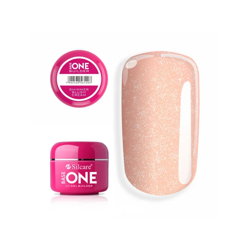SILCARE BUILDER GEL ŻEL UV BASE ONE ŻEL BUDUJĄCY DO PAZNOKCI 50G SHIMMER BLUSH CREAM subtelny, kremowy odcień moreli z różową poświatą i tysiącem połyskujących drobinek.