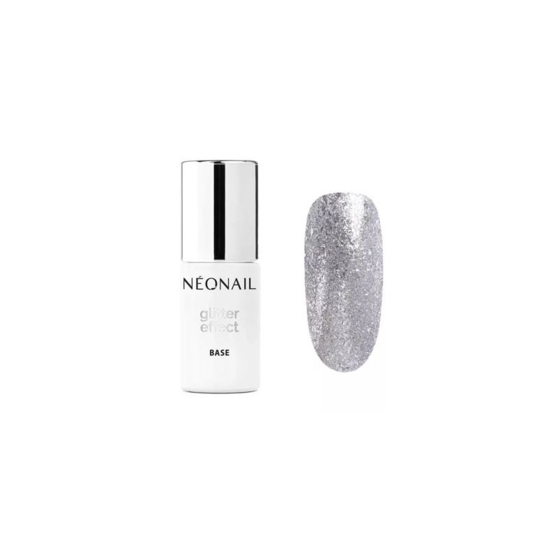 NEONAIL GLITTER EFFECT BAZA HYBRYDOWA 7,2ML SILVER TWINKLE z rozświetlającymi drobinkami.