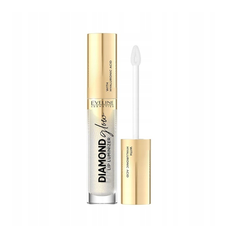 Eveline Cosmetics Diamond Glow Lip Luminizer 07 Golden Dust to błyszczyk do ust z kwasem hialuronowym, który nadaje ustom efekt tafli z subtelnym, złotym rozświetleniem. Półtransparentna formuła z drobinkami pięknie odbija światło, podkreślając naturalny kolor warg i nadając im świeży, promienny wygląd. Kosmetyk intensywnie nawilża, wygładza i optycznie powiększa usta, zapewniając komfort noszenia bez uczucia lepkości. Doskonały zarówno do codziennego makijażu, jak i jako wykończenie bardziej wyrazistych stylizacji.