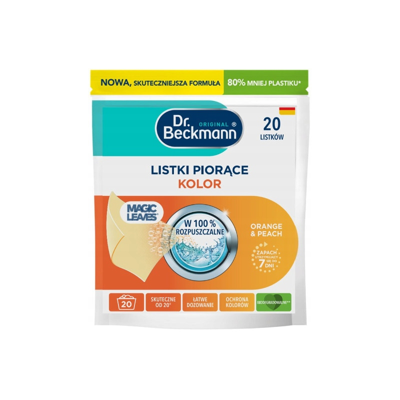 DR.BECKMANN CHUSTECZKI LISTKI PIORĄCE DO PRANIA KOLOR 20 SZTUK POMARAŃCZOWE
