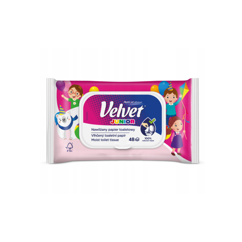 VELVET JUNIOR NAWILŻANY PAPIER TOALETOWY 42 SZTUKI został stworzony z myślą o Twoim dziecku.