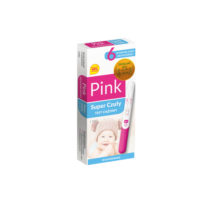 Pink Strumieniowy Super Czuły jest szybkim i wysoce czułym testem ciążowym służącym do wykrywania ludzkiej gonadotropiny kosmówkowej (hCG) - hormonu, który występuje w moczu kobiet w ciąży. Czułość testu Pink Strumieniowy Super Czuły została ustawiona na 10 mIU/ml.