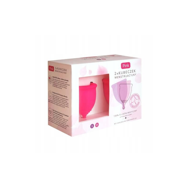 PINK KUBECZEK MENSTRUACYJNY S I M 2SZTUKI hipoalergiczny, bez BPA, lateksu i chemikaliów.