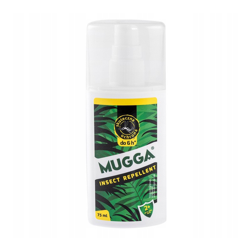 MUGGA w sprayu dla osób dorosłych oraz dzieci od 2 roku życia, o silnym, odstraszającym działaniu przeciwko komarom (europejskim i tropikalnym), muchom, muchom krwiopijnym, meszkom, moskitom, gzom, bąkom, kleszczom i innym insektom. Zabezpiecza przed ukąszeniem przez 6 godzin od zastosowania. Ma przyjemny zapach, można je bezpiecznie stosować na preparaty do opalania i inne kosmetyki.