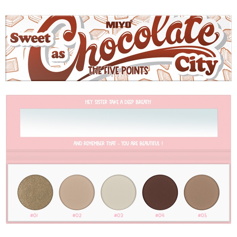 MIYO THE FIVE POINTS PALETA CIENI DO POWIEK 6.5 G SWEET AS CHOCOLATE CITY idealny wybór dla każdej osoby kochającej eksperymentowanie z kolorami i efektami na powiekach.