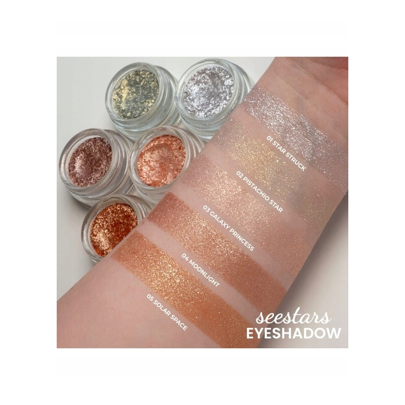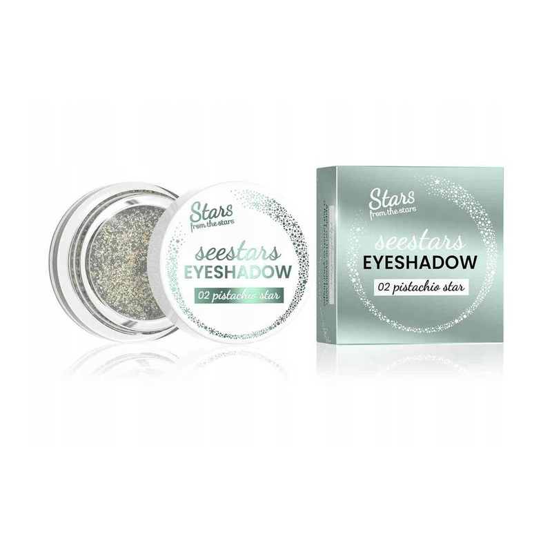 Cień do powiek nr 02 „Pistachio Star” z linii Seestars marki Stars from the Stars to produkt, który dodaje makijażowi wyjątkowego blasku. Zielonkawy kolor ze złotymi drobinkami tworzy efekt migoczącej tafli, a innowacyjna formuła zapewnia trwałość, łatwą aplikację i możliwość stopniowania intensywności koloru. Idealny wybór na wieczorne wyjścia i specjalne okazje.