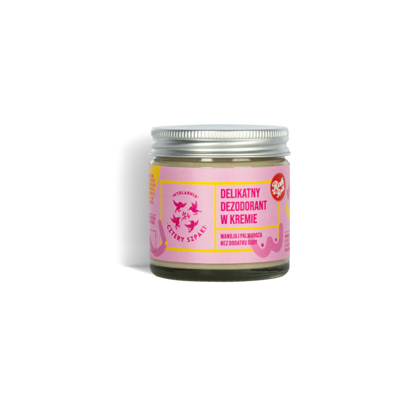 MYDLARNIA CZTERY SZPAKI DELIKATNY DEZODORANT W KREMIE 60ML BADAJ SIĘ to delikatna wersja bez dodatku sody.