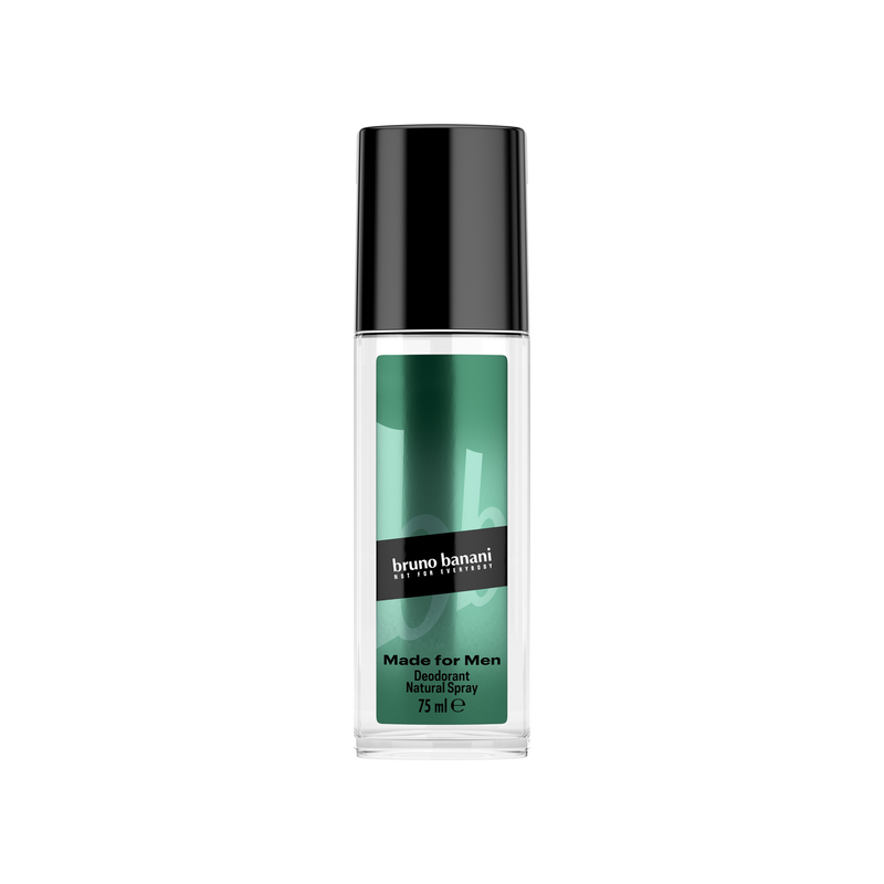 BRUNO BANANI MADE FOR MEN DEZODORANT PERFUMOWANY W SPRAY 75ML MĘSKI łączy aromatyczno-owocowe nuty z drzewnymi akcentami i wonią piżma, tworząc zapach, któremu nie oprze się żadna kobieta.