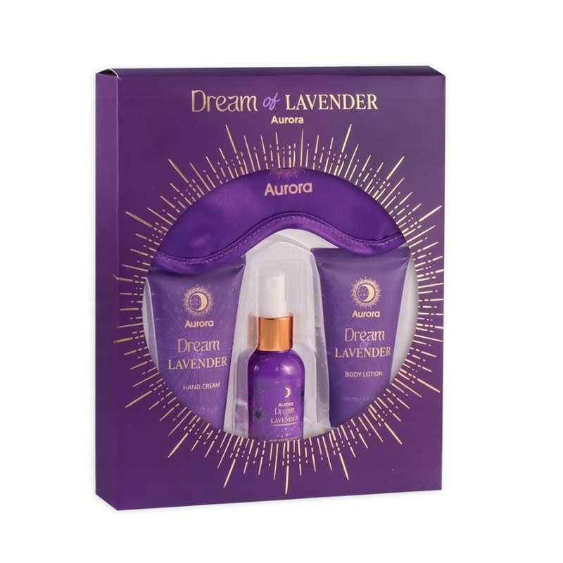 AURORA DREAM ZESTAW PREZENTOWY KOSMETYCZNY LAWENDA 4 ELEMENTY stworzony z myślą o chwili odprężenia i domowym rytuale relaksu.