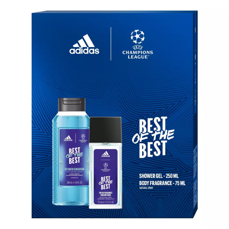 ADIDAS BEST OF THE BEST ZESTAW PREZENTOWY PIELĘGNACYJNY DLA MĘŻCZYZN z żelem pod prysznic 250ml oraz dezodorantem atomizerem naturalnym 75ml.