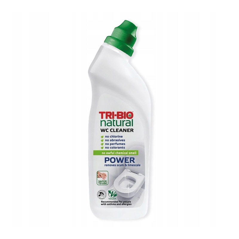 Ekologiczny środek do czyszczenia toalet TRI‑BIO o pojemności 0,71 l skutecznie usuwa kamień, osady i zabrudzenia w muszli klozetowej. Formuła nie zawiera chloru ani materiałów ściernych, jest bezzapachowa, bez barwników, biodegradowalna i bezpieczna dla środowiska. Produkt można stosować w gospodarstwach z przydomową oczyszczalnią ścieków.