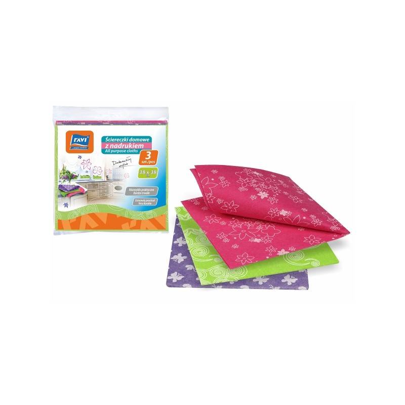 RAVI ŚCIERECZKI DOMOWE Z NADRUKIEM 38X38CM 3SZTUKI