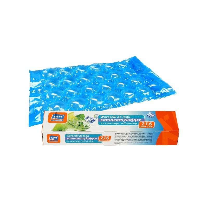 Samozamykające woreczki do lodu pozwalają na szybkie i wygodne przygotowanie kostek lodu. Produkt wykonany jest z wysokiej jakości folii LDPE nieprzepuszczającej zapachów. Woreczki umieszczone są w wygodnym kartoniku z perforacją.