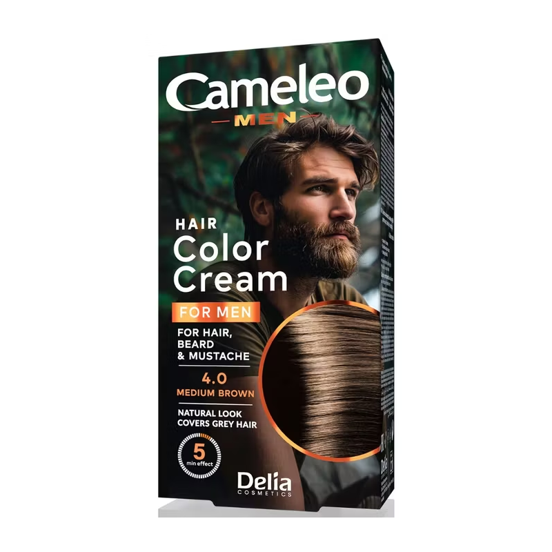DELIA CAMELEO MEN FARBA DO BRODY I WĄSÓW MEDIUM BROWN 4.0 największym atutem jest fakt ,że nie brudzi brody . Nie zawiera amoniaku, PPD i parabenów.