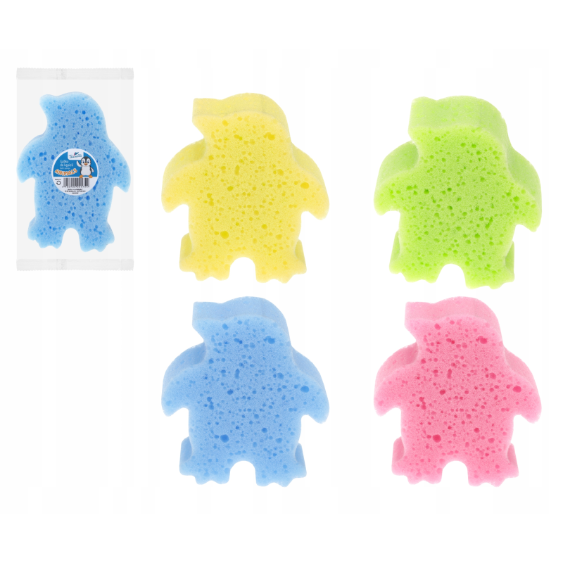 Gąbka do kąpieli Pingwin RAVI – miękka pianka, obfita piana i przyjazny kształt w mixie kolorów.