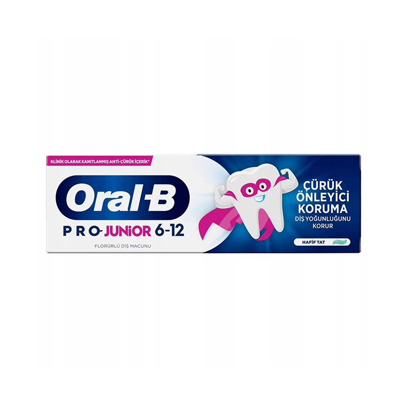 Oral‑B Pro‑Junior 6‑12 lat pasta do zębów o łagodnym smaku 75 ml to preparat stworzony specjalnie dla dzieci w wieku szkolnym, który łączy skuteczne czyszczenie z delikatną formułą dopasowaną do potrzeb młodego uzębienia. Pasta zawiera odpowiednie stężenie fluoru, który wspomaga ochronę przed próchnicą, a łagodny, przyjemny smak sprawia, że mycie zębów staje się łatwiejsze i bardziej akceptowalne dla dzieci. Produkt został opracowany z myślą o codziennej higienie jamy ustnej, dbając o pielęgnację zębów mlecznych i stałych oraz promując zdrowy nawyk regularnego szczotkowania.