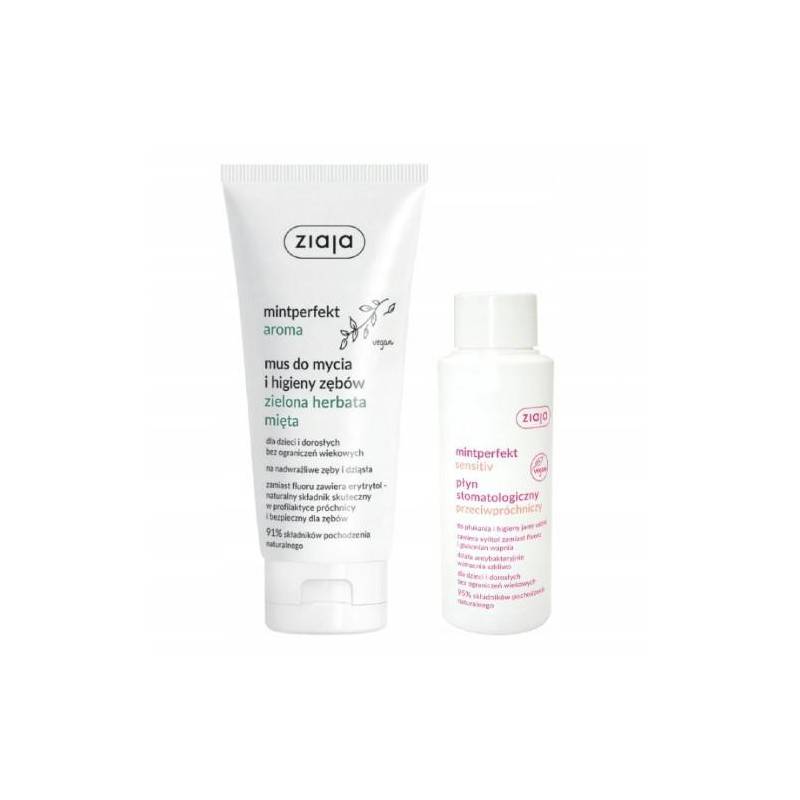 ZIAJA MINTPERFEKT AROMA ŻEL DO MYCIA ZĘBÓW ZIELONA HERBATA MIĘTA 100G + PŁYN DO PŁUKANIA 40 ML