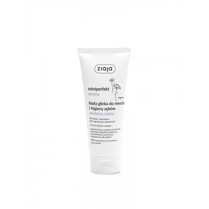 ZIAJA MINTPERFEKT AROMA BIAŁA GLINKA DO MYCIA I HIGIENY ZĘBÓW VERBENA MIĘTA 100ML aż 95% składników pochodzenia naturalnego.