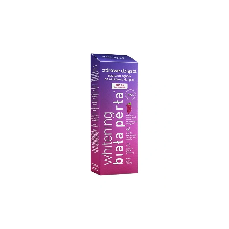 BIAŁA PERŁA WHITENING PASTA DO ZĘBÓW 75ML ZDROWE DZIĄSŁA pomaga regenerować osłabione i zaognione dziąsła.
