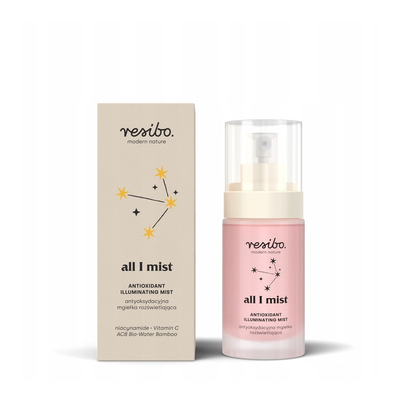 Antyoksydacyjna mgiełka rozświetlająca Resibo All I Mist 30 ml – odświeżenie, nawilżenie i blask dla skóry twarzy.