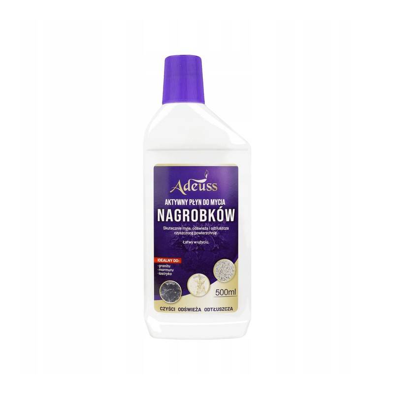 ADEUSS PŁYN DO MYCIA NAGROBKÓW 500ML myje i odświeża płyty nagrobkowe i pomniki.