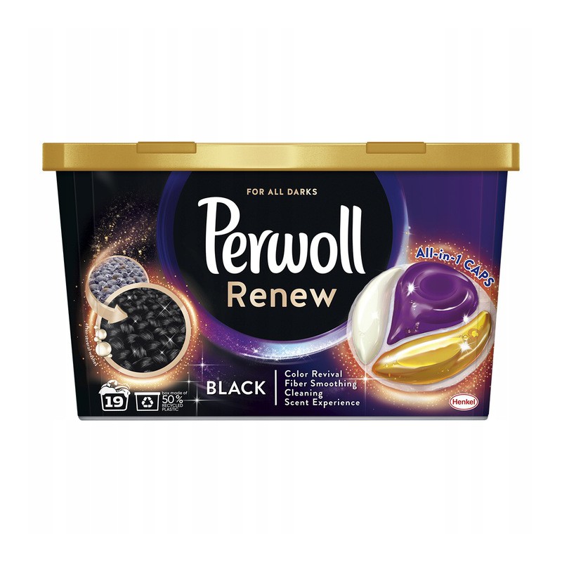 Nowe kapsułki do prania Perwoll Renew Black przeznaczone są do prania ciemnych i czarnych tkanin. Perwoll Renew nie tylko piorą ubrania ale również zapewniają skuteczną ochronę tkaninom. Nowe kapsułki są tak zbudowane że zapewniają ochronę w trzech strefach: ochrony koloru, wygładzenia włókien oraz nadania im świeżego zapachu. Kapsułki Perwoll są bardziej skoncentrowana od tradycyjnego płynu do prania- zawierają 85% mniej wody. Folia jest w 100% biodegradowalna i rozpuszczalna w wodzie. Plastikowe opakowanie kapsułek Perwoll jest w 50% wykonane z plastiku z recyklingu i w 100% nadaje się do ponownego recyklingu.