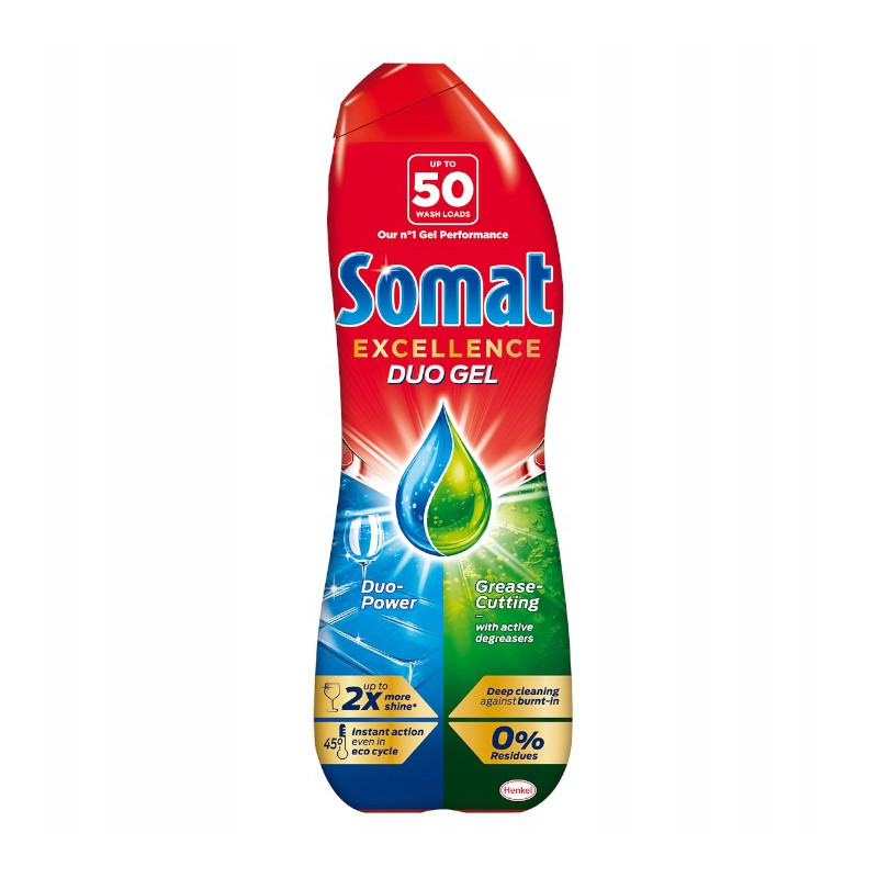 SOMAT ŻEL DO ZMYWARKI EXCELLENCE DUO 900ML GREASE-CUTTING to najlepszy pogromca zatłuszczonych naczyń!