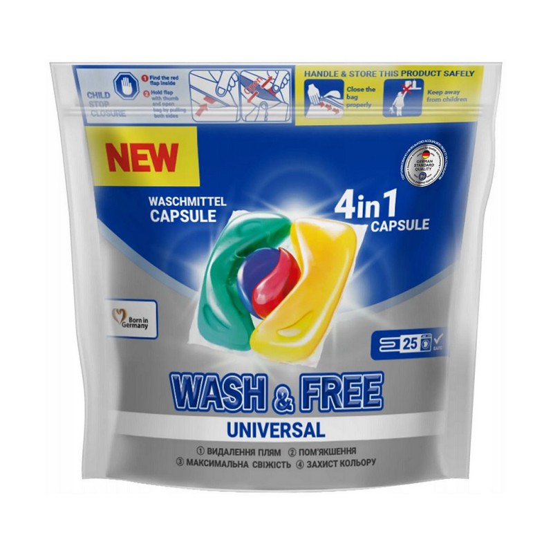 WASH&FREE KAPSUŁKI DO PRANIA 4W1 25SZT. UNIWERSAL
