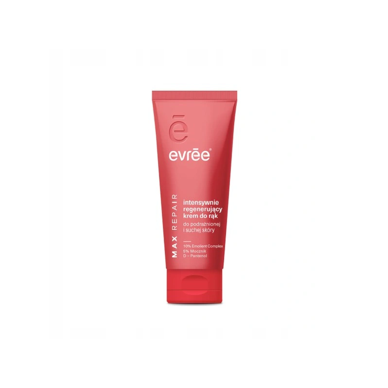 EVREE MAX REPAIR KREM DO RĄK 75ML SUCHA I PODRAŻNIONA regeneruje i nawilża suchą oraz podrażnioną skórę rąk.