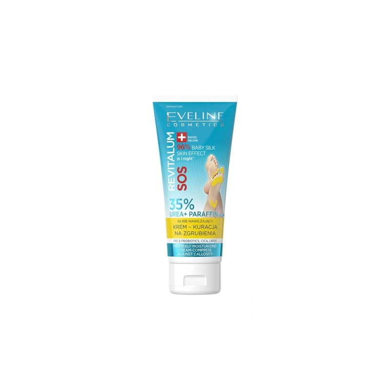 Eveline Cosmetics Revitalum SOS – Silnie nawilżający krem-kuracja na zgrubienia to produkt dedykowany osobom borykającym się z suchą, zrogowaciałą skórą stóp, szczególnie w okolicach pięt i śródstopia. Jego formuła została opracowana z myślą o intensywnej regeneracji i nawilżeniu skóry.