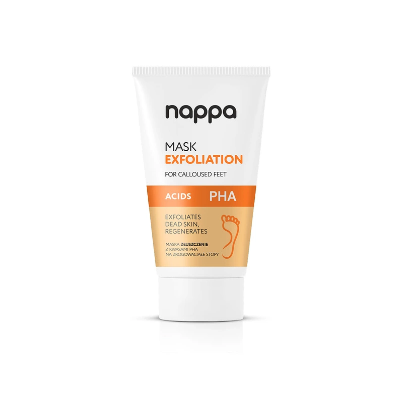 Złuszczająca maska do stóp z PHA 10%, która delikatnie usuwa zrogowaciały naskórek, intensywnie nawilża i wygładza skórę, przywracając jej miękkość.