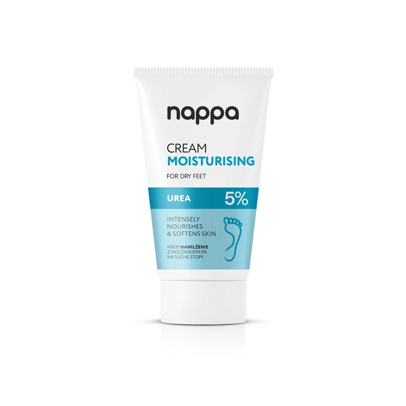 Nappa krem NAWILŻENIE z mocznikiem 5% to skuteczny kosmetyk do codziennej pielęgnacji suchych i szorstkich stóp. Zapewnia intensywne nawilżenie, wspomaga odbudowę naturalnej bariery skóry i chroni przed pęknięciami. Jego lekka, szybko wchłaniająca się formuła oraz składniki regenerujące i odświeżające czynią go praktycznym i komfortowym rozwiązaniem dla osób z suchą, wymagającą skórą stóp.
