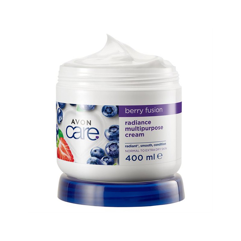 AVON CARE KREM DO TWARZY CIAŁA RĄK 400ML NAWILŻAJĄCY BERRY FUSION zapewnia skórze porcję blasku i aksamitną miękkość w dotyku.