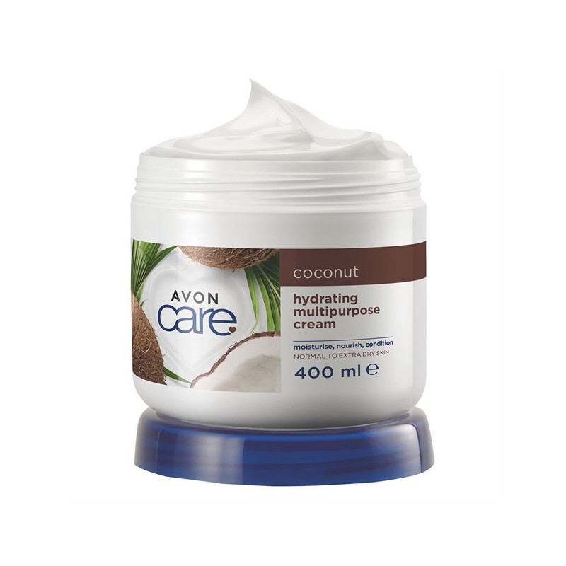 AVON CARE KREM DO TWARZY CIAŁA RĄK 400ML NAWILŻAJĄCY COCONUT długotrwale nawilża i odżywia skórę, chroniąc ją przed wysuszeniem.