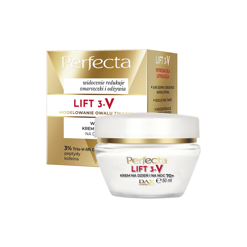 PERFECTA LIFT 3V KREM DO TWARZY 50ML 70+ WYGŁADZAJĄCY DZIEŃ I NA NOC unikalne połączenie działające z potrójną siłą na modelowanie owalu twarzy.